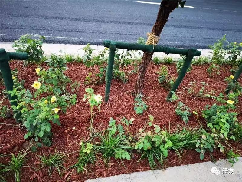覆蓋物是一種新型的城市綠地造景材料,通過(guò)粉碎錘磨、高溫發(fā)酵、染色處理等工序,把園林廢棄物制成彩色木屑,覆蓋在土表起到保濕、保溫、滯塵、改良土壤等作用,在給裸土敷上“面膜”的同時(shí),又形成美麗的圖案裝扮環(huán)境。