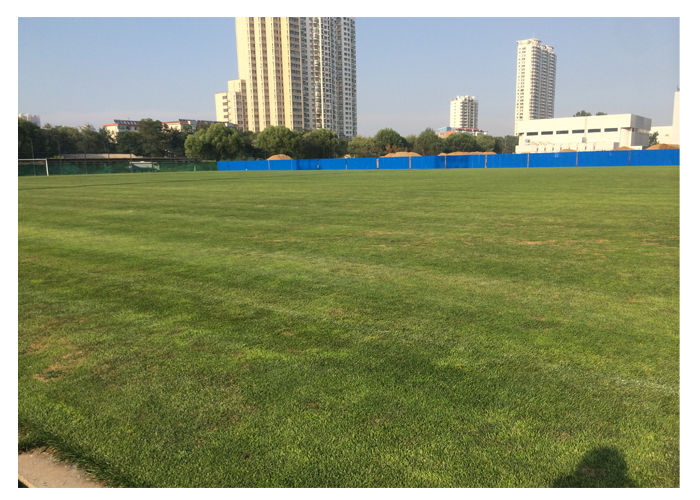 兩個(gè)球場(chǎng)對(duì)比明顯:其中一個(gè)球場(chǎng)使用優(yōu)繪三次,幾乎沒(méi)有病斑;另一個(gè)球場(chǎng)使用優(yōu)繪一次,正在發(fā)生腐霉病和夏季斑病,病斑較為明顯。