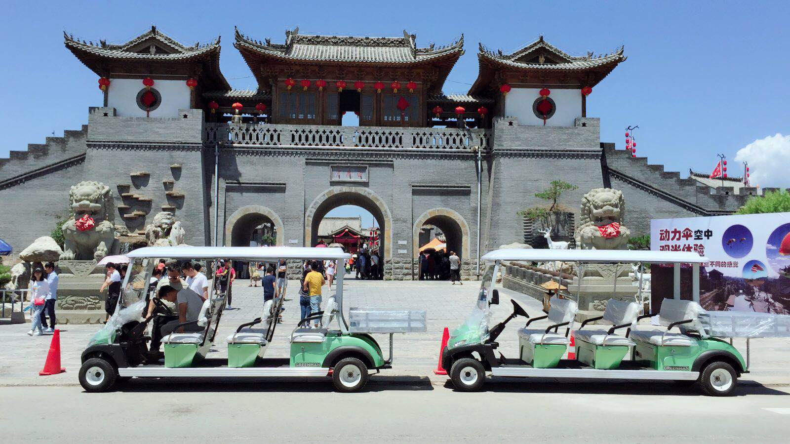 2018年6月10日在西安白鹿倉景區(qū)交付2臺綠友生產(chǎn)的十一座貨斗車。