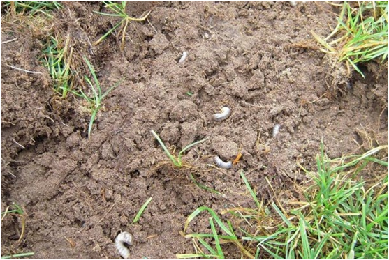 如果七月底正常澆水,已經(jīng)為草坪補(bǔ)充了足夠的水分,但仍然出現(xiàn)了這種情況,同時向上抓取枯黃草皮,很容易即可將其抓起,根系缺失,土壤表面可以發(fā)現(xiàn)白白的“小肉蟲子”,這個就是我們今天要聊的蠐螬。