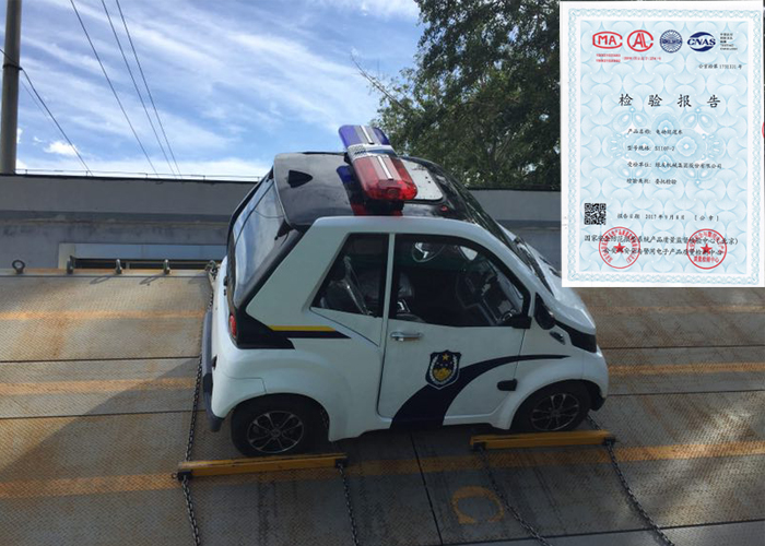 9月8 日, 綠友集團自主研發(fā)的GREENMAN 兩座巡邏車順利通過“公安部安全與警用電子產品質量檢驗中心”型式試驗認證。取得該認證后,綠友兩座巡邏車可以合法地使用警徽等警用標志。該認證要求較高,綠友車輛以優(yōu)異的性能一次性通過。為了提升GREENMAN 巡邏車在公安、武警、消防等行業(yè)的市場競爭力,我公司委托國家安全防范報警系統(tǒng)產品質量監(jiān)督檢驗中心和公安部安全與警用電子產品質量檢測中心,針對GREENMAN 兩座巡邏車的主要技術參數、制動性能、車外噪聲、側傾穩(wěn)定性、轉向性能、控制設備絕緣電阻、線束、專用接線盒、續(xù)駛里程、防雨密封性,防火要求等項目進行了檢驗測試,所有檢驗項目均符合檢驗標準要求,最終檢測結果證明了GREENMAN 兩座巡邏車質量的可靠性。