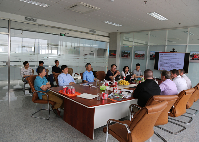 5月8-9日的綠友園,碧空如洗,清風(fēng)獵獵。綠友集團迎來了美國木霸克公司首席執(zhí)行官戴夫?赫爾、高級副總裁約翰?福特、工業(yè)設(shè)備國際部經(jīng)理柯爾特?麥克穆倫、工業(yè)設(shè)備銷售總監(jiān)邁克爾?斯坦頓一行四人的到訪。