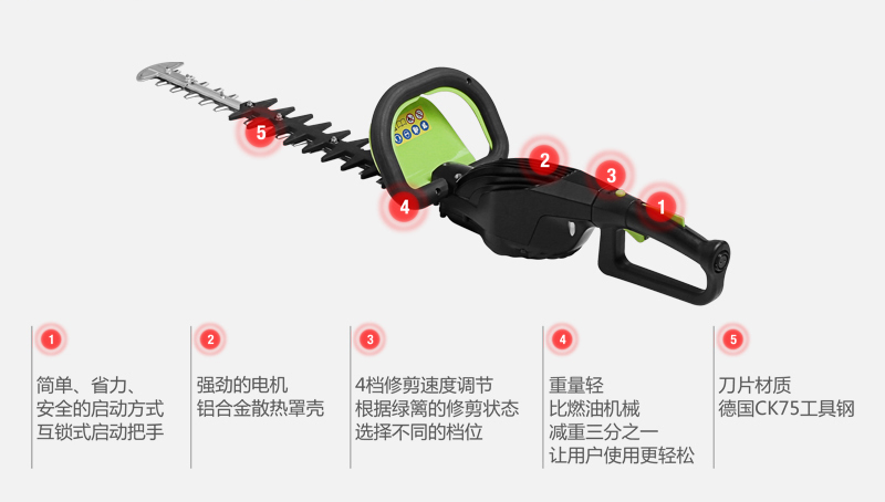 3. 4檔調(diào)速設(shè)計,根據(jù)植物的生長狀態(tài)選用合適的修剪速度。